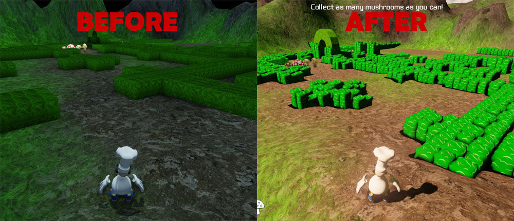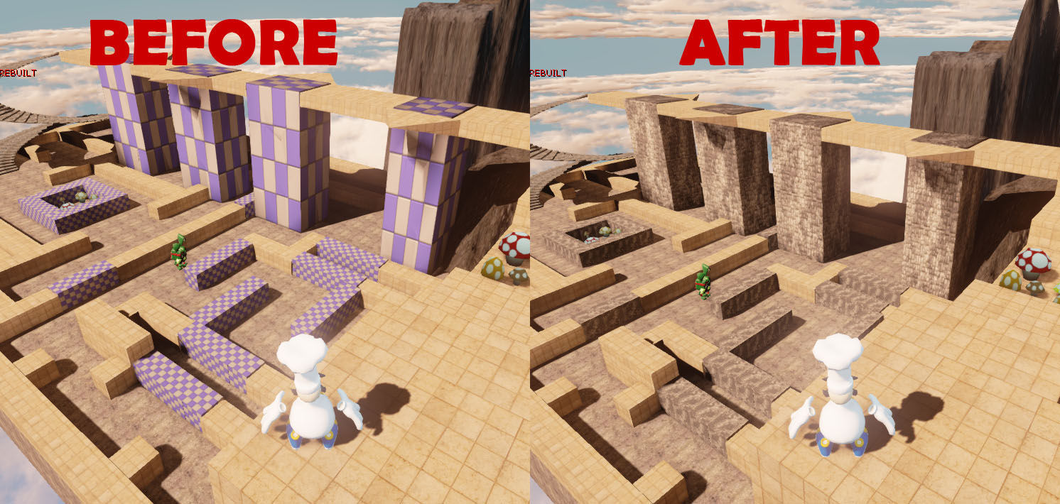 - Converted The garden's blocky look to the Mario-styled static-mesh hedge that it is now. 2 hours.