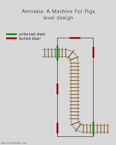 ![]() While that is not completely true as there are eventually enemies to avoid, the hallway pictured above is not a unique moment in the game by any means. The places you navigate are chock-full of locked doors at every turn, leaving you one place to go. The game has you walking a very linear path that has sharp soundbyte attacks plunked here and there for the jump-scare effect. When developing, and especially with a small team, it is important to keep the scope of your project in check. You can't expect every door to be open and promise endless explorable areas. There are ways to lead the player to the intended destination that do not make the player feel hand-held through forced navigation. One of the doors could be an additional connecting hallway, or cracked open just a bit to peek inside. Another possibility is of course just remove one or two of them. I've seen half a dozen playthroughs of this game, and every participant tried to open all of the doors. It is hard not to feel deflated when every one of them is locked. FAVORITE LEVEL DESIGN MOMENT There was a part where the player is required to go retrieve a liquid solution, and on the return trip with the newly acquired item, the level layout had changed. I found myself wondering "what the heck, I don't remember this..." Upon further inspection and playing through again, the wall at some point closes behind the player, and a previously locked doorway is now open. It was a subtle mindbending moment that kept me on my toes. LEAST FAVORITE LEVEL DESIGN MOMENT The very first encounter with a man-pig was essentially broken. I didn't know anybody or anything was coming. I had jumped up on a box to see if I could sneak behind it, and BOOM, the lights flickered, and the enemy was trying to attack me from the ground. It couldn't get to me though. I just sat on the box looking at it going in circles trying to attack me, never leaving. This is just a case of not enough playtesting to see that this could happen and break the experience of the moment. A simple blocking volume or larger crate would have done the trick. THE BOTTOM LINE I would have been proud to have worked on Amnesia: A Machine For Pigs. The game has a clear vision. While the cinematic linearity could have allowed for a bit more player agency, the design was intentional and effective. The game has a spectacular finish that makes the misfires in polish along the way worth it. ♞ TOP ♞