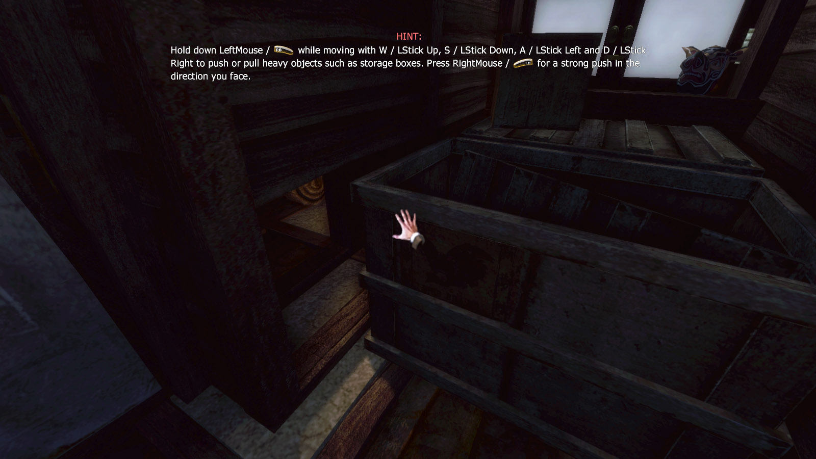 This was an excellent choice to let the player get their bearings and handle on the control scheme while jointly giving the player agency to where they want to go. A short time later, a new mechanic is introduced: grabbing: An evil box thwarts the hero's quest forward