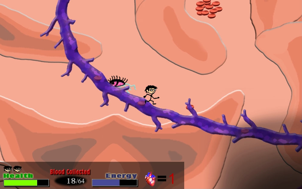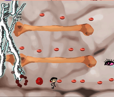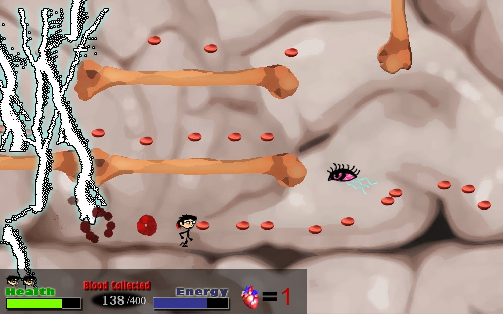 Wake Up Rokuko is a collection-based platformer. In each of the levels, you must collect enough blood cells and find the exit to move on. Completed in 2010, I spent a total of 1 month working on the game. Made using Game Maker, I designed the game, levels and art. I also wrote all of the scripting in GML (Game-Maker language). The last level did not get enough playtesting and is near-impossible, but can you find the 5 secret hearts?